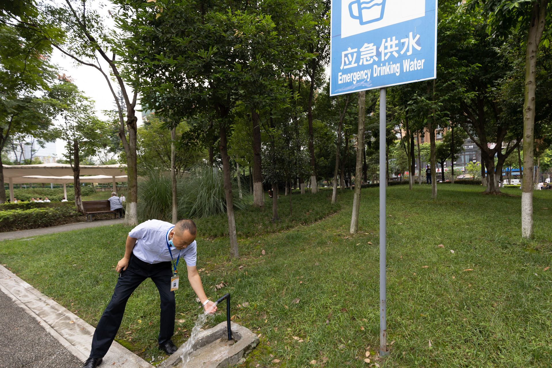 位于成都高新区天府二街与天府三街之间的大源中央公园,应急供水设施标识醒目。