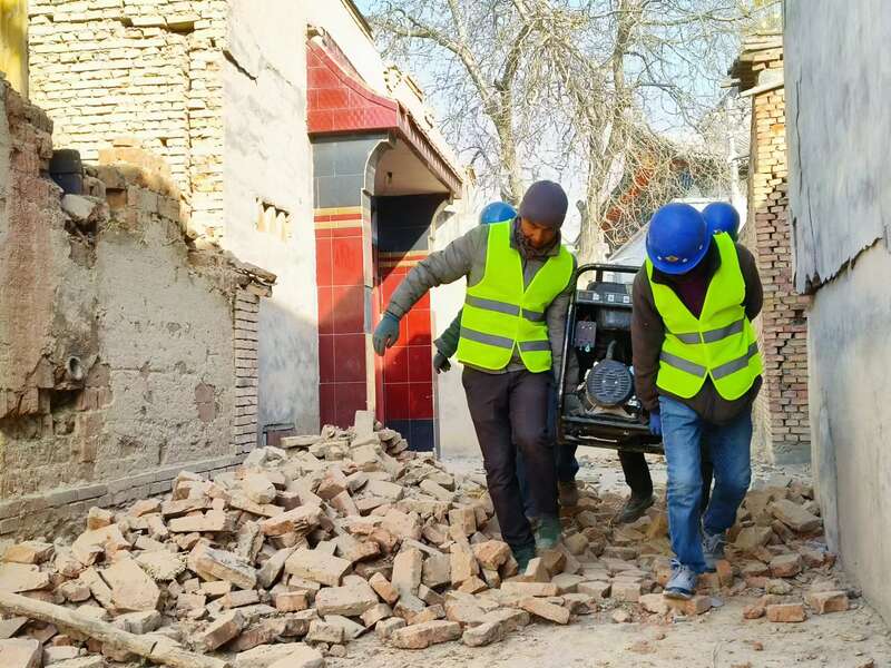 “天气太冷,冻得我活动都不灵活了”。19日上午十一点左右,持续工作十个小时的孙朝辉告诉记者,他们在积石山县周围村落抢修时发现,多数村内的房屋墙体倒塌严重,到处是断壁残垣,维修车辆很难直达基站,他们需要抬着重达五十公斤的发电机徒步前行,手冻得发痒,“以前我们2个人就能提动的设备,现在需要4个人。”