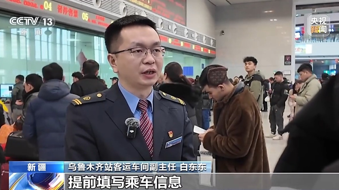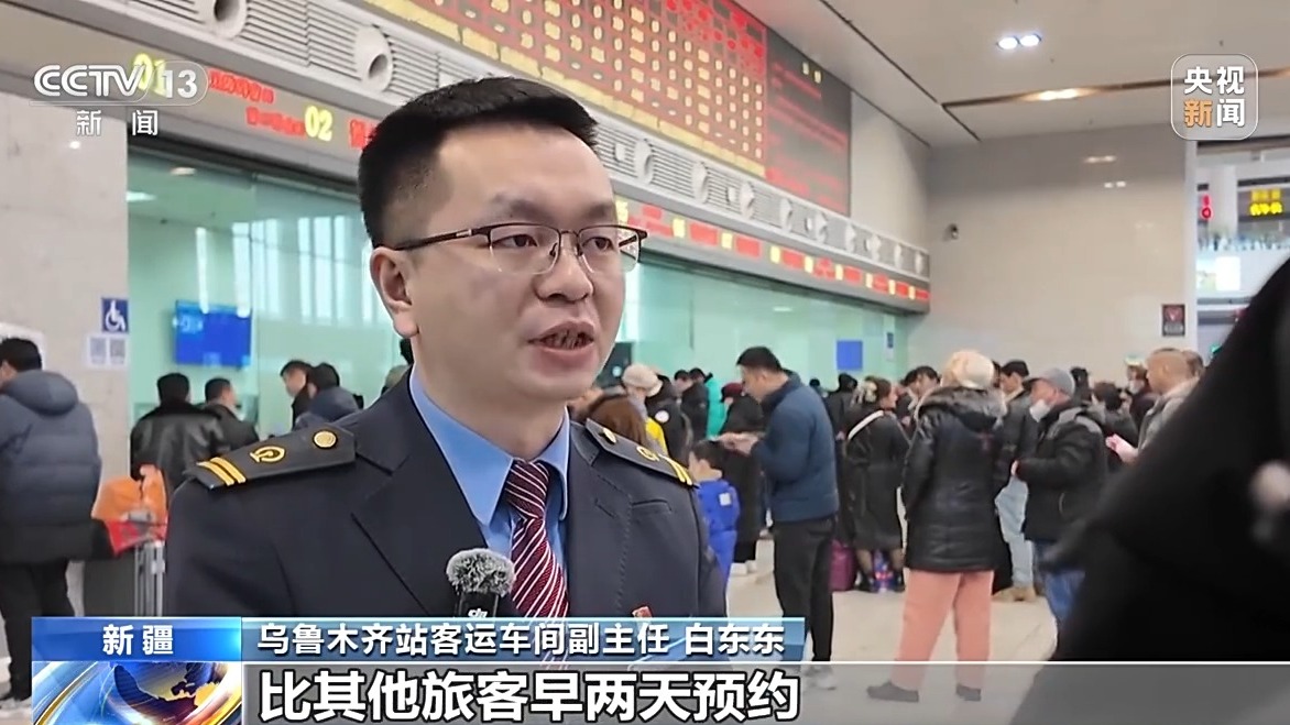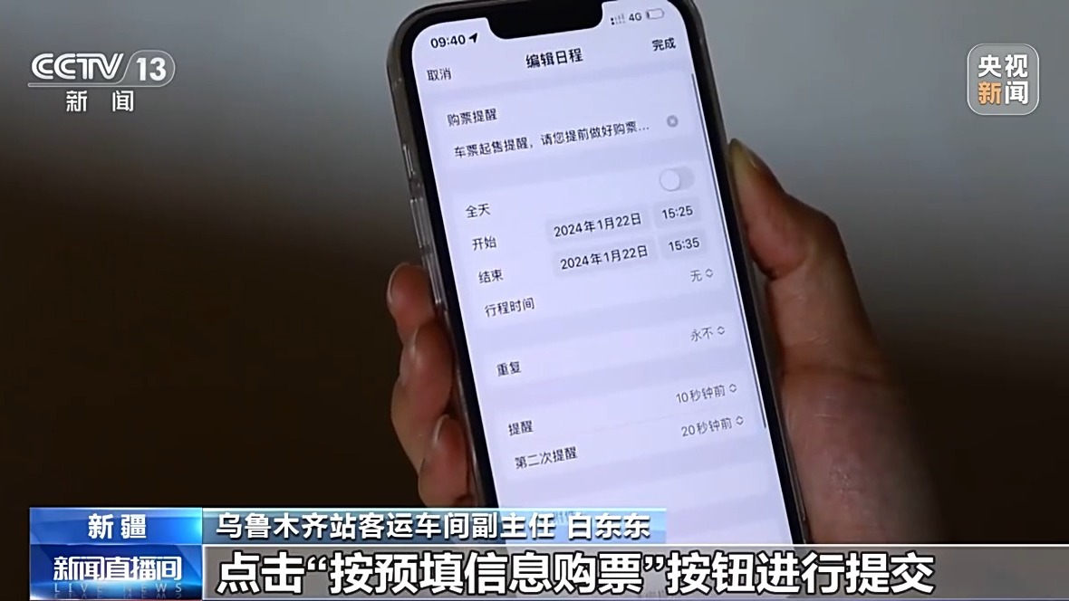 乌鲁木齐站客运车间副主任 白东东:这与之前购票最大的区别就是,提前填写乘车信息,并且支持预选车次和席别的多种组合,大大增加了成功的概率。我给大家举个例子,乌鲁木齐火车站车票起售时间是每天早上的8点30分,没有预填功能之前,我们要买除夕车票,就需要在1月26日8点30分的时候,登录12306,先查询余票,再选择车次、席别和乘车人,最后付款,而这个过程一旦信息选择错了就要重新调整,很可能错过购票时间。而有了这个预填功能后,购买除夕2月9日的车票,在1月26日0点到8点30分前的任何时间,随时可以把车次、席别和乘车人等信息填好,等发售时间一到,立即提交订单。