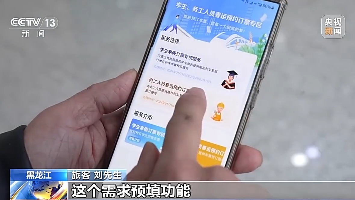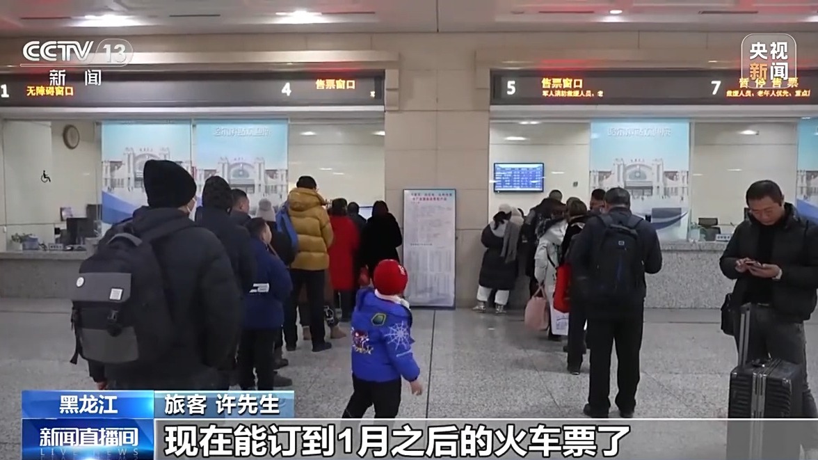旅客 许先生:以前放寒假回学校的时候,必须得提前15天预定的时候你才能预定,然后人还多,你抢票都抢不到。现在能订到1月之后的火车票了,对学生来说还是挺方便的。