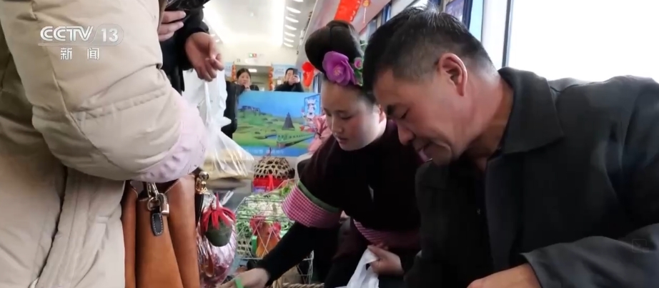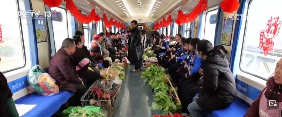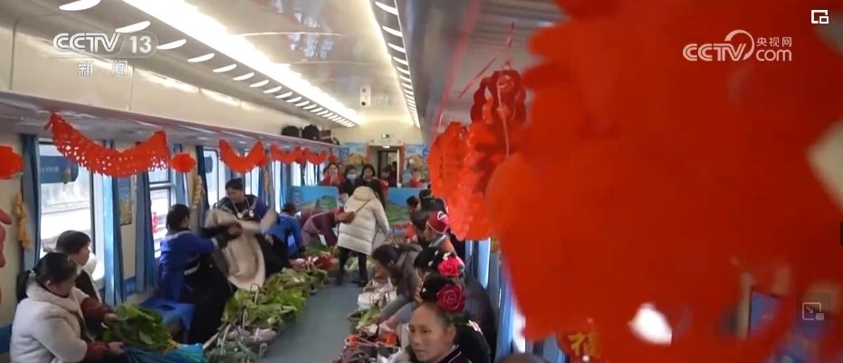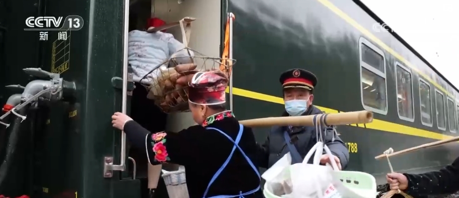这趟“慢火车”,是乡亲们走亲访友的“幸福快车”,更是把大山里的农特产品送到山外售卖的“致富快车”。新春临近,列车上的农特产品车厢变得热闹起来,村民们将自家的年货拿上车售卖,车厢里喜气洋洋。