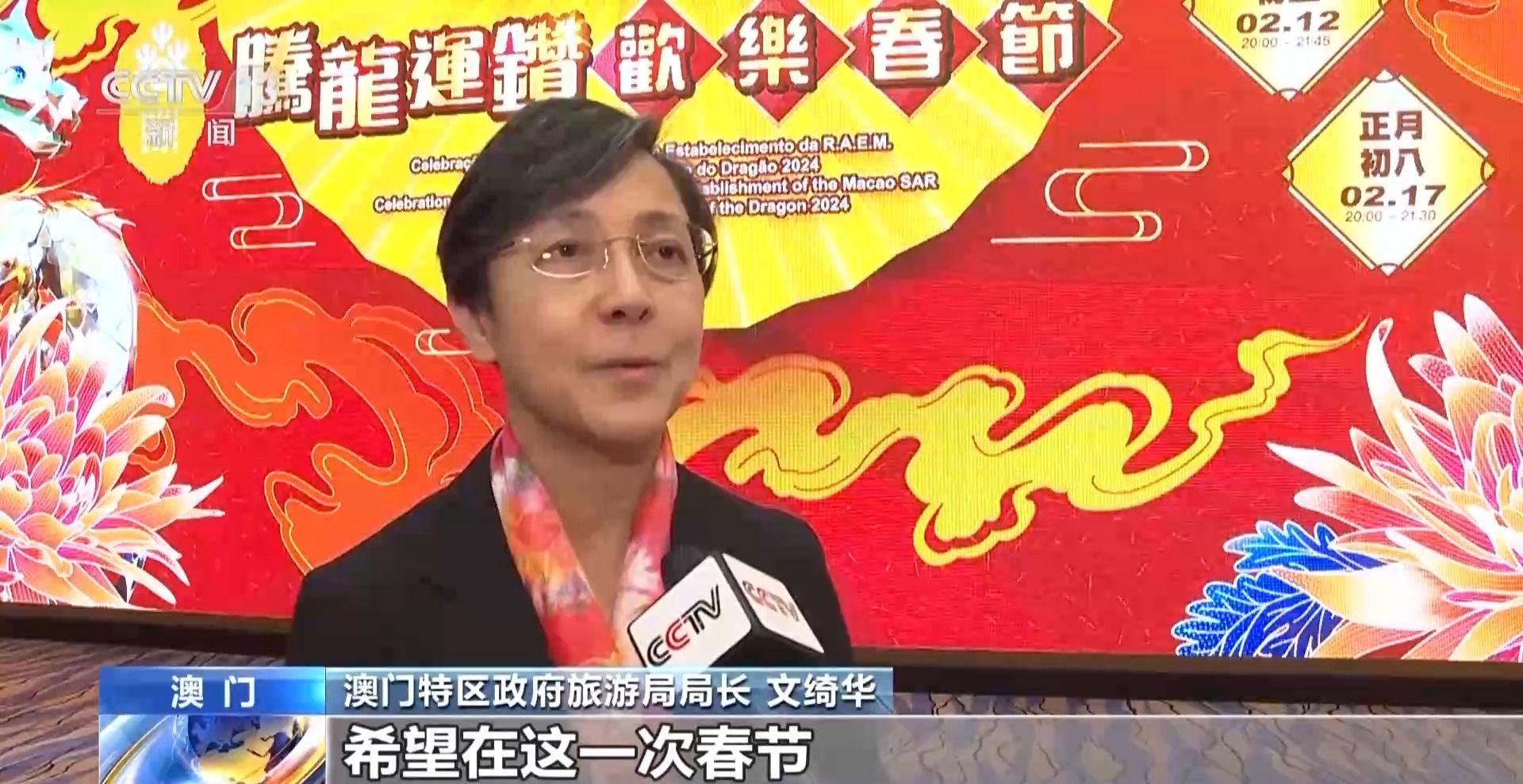 澳门特区政府旅游局局长 文绮华:我希望在这一次春节,大家除了参加大型活动,也可以走进社区里面。去年我们整年有约2800万人次的旅客来到澳门,今年希望能够恢复到3300万人次左右。
