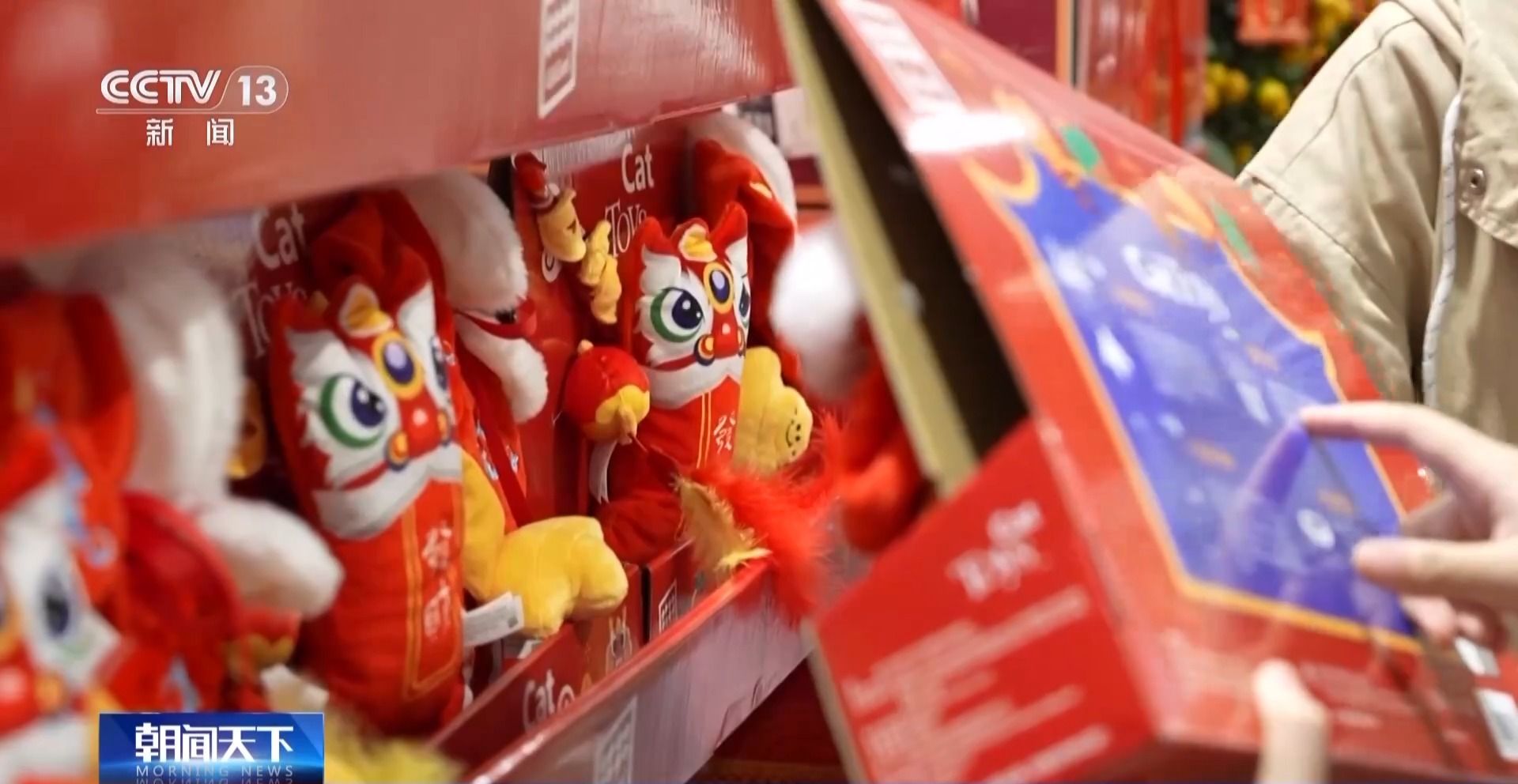 龙年春节即将到来,超市提供了很多龙元素的新春产品供大家挑选,令人应接不暇,年货区域的工作人员一大早也开始忙活起来。