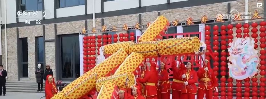 在河北保定,当地举办了“非遗过大年”活动。有300余年历史的非遗表演——“摆字龙灯”首先亮相。表演者舞动着金色的长龙,摆出“龙年大吉”等字样。除了表演,还有非遗技艺“易水砚制作”“结绳技艺”等也吸引了群众和游客们沉浸式体验。