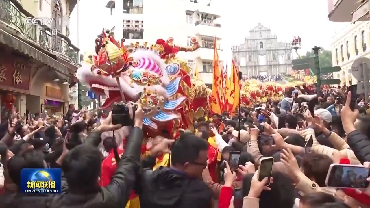 今天,澳门举办“欢乐春节─2024年龙腾舞跃贺新春”社区巡演活动。一条长达238米的金龙和18头醒狮从大三巴牌坊同时出发,途经澳门多个主要景点,与众多市民和游客一起庆祝龙年新春佳节。