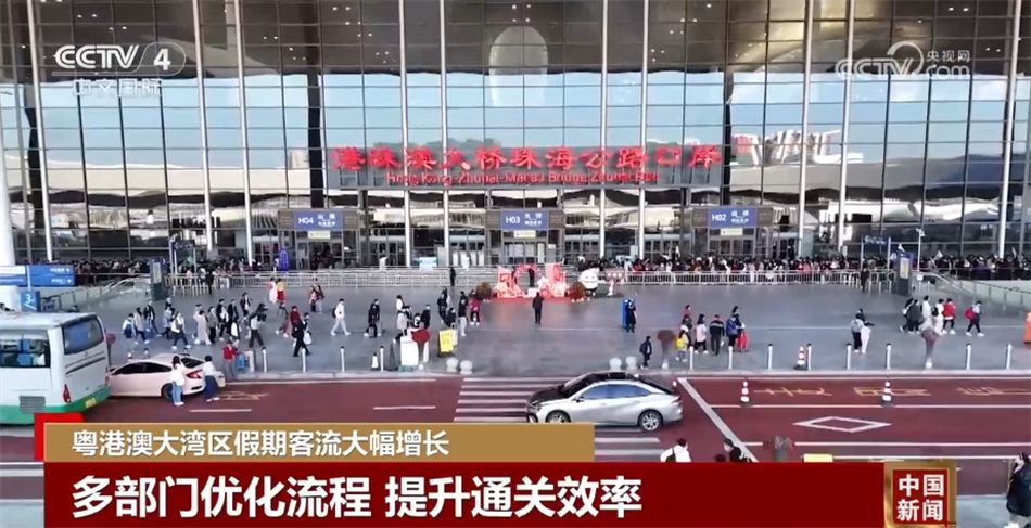 为确保港澳居民在春节期间往来便捷,广东交通、边检等多部门优化流程,进一步提升通关效率。在港珠澳大桥珠海公路口岸,来自港澳的单牌车在车辆“一站式”查验通道内有序排队,从开进车道到查验完成,每辆车只需20秒左右便可办理完出入境手续。