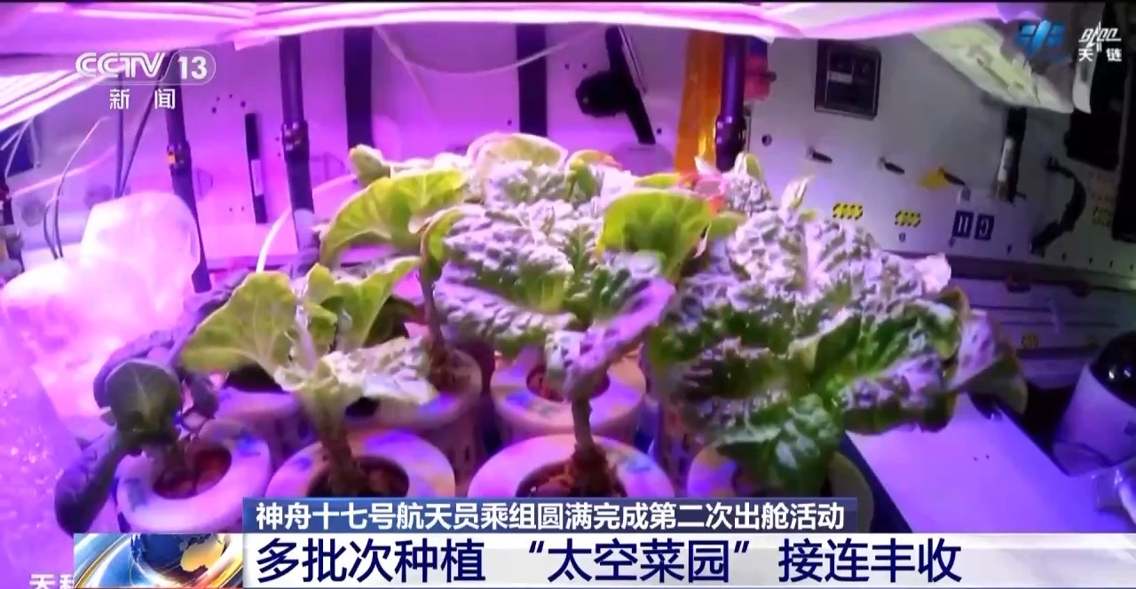 在轨期间,空间站内“太空菜园”接连喜获丰收。在太空种植蔬果所使用的“太空菜园”装置,是新设计的第二代空间植物栽培装置,可实现轮番、多批次的种植,为未来大规模太空种植奠定基础。第三代植物栽培技术正在研究当中,将在减少浪费、增加循环比例方面得到进一步改进。