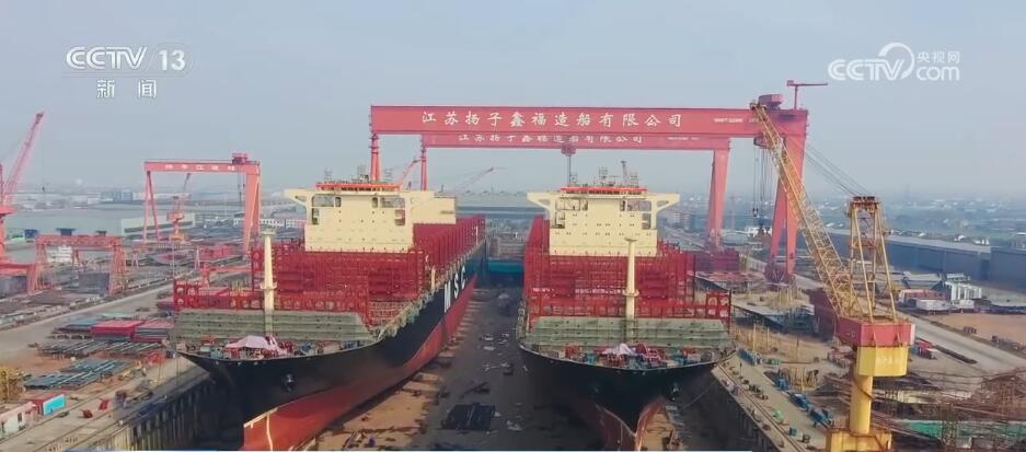春节过后,在全国最大的民营造船基地、国家级船舶出口基地泰州,各家船企一派繁忙景象。这家船坞内,14艘远洋运输船舶正在同时建造。