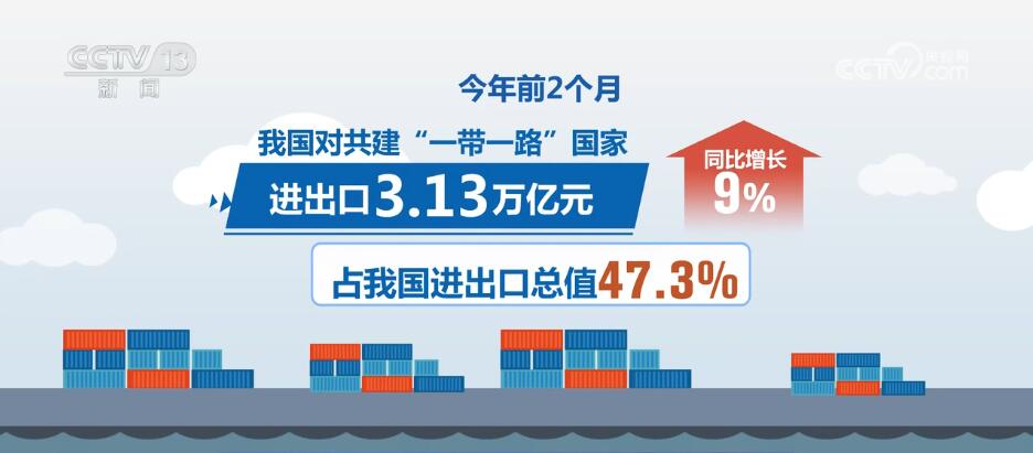 海关统计数据显示,今年前2个月,我国对共建“一带一路”国家进出口3.13万亿元,同比增长9%,占我国进出口总值的47.3%。其中,对东盟进出口9932.4亿元,增长8.1%;对中亚五国进出口950.9亿元,增长26%。同期,对RCEP其他成员国进出口1.94万亿元,增长3.5%;对拉美进出口5874.8亿元,增长17.3%;对非洲进出口3389.4亿元,增长17.3%。