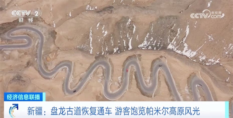 随着天气回暖,帕米尔高原冰雪逐渐消融。日前,新疆喀什地区盘龙古道恢复通车,36公里山路、600多个弯道,从海拔3000多米到4200多米,游客可以尽情欣赏沿途风光。