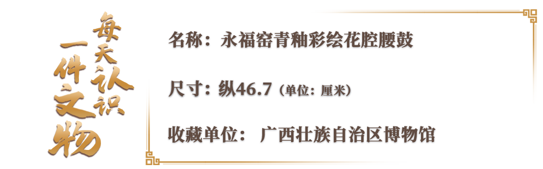 今天一起认识永福窑青釉彩绘花腔腰鼓