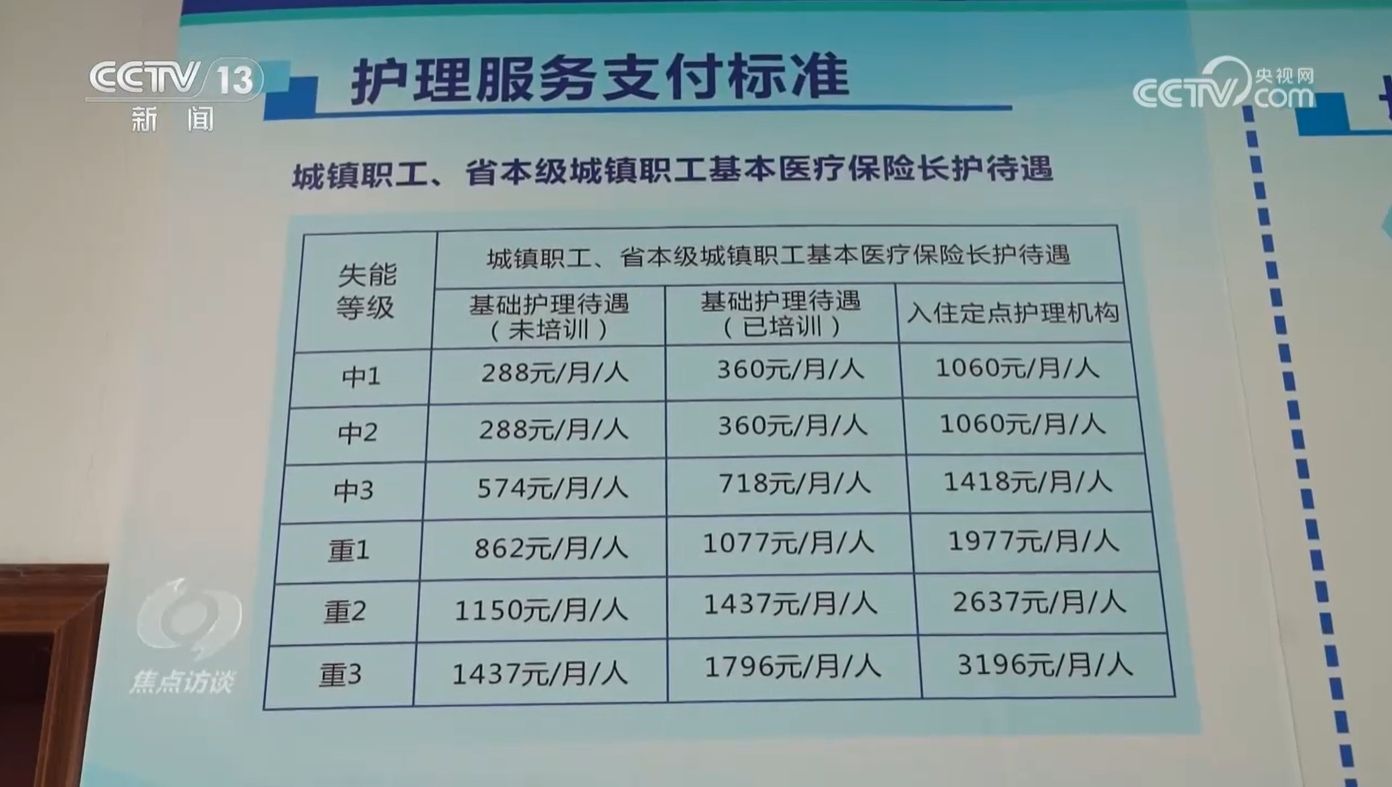 四川成都市医疗保障局副局长贾勇:“基础待遇主要是向失能人员的居家照护人员购买照护服务。在成都,有很多居家照护人员,比如他的亲属、保姆,这笔费用就是给这些人的,不是给失能家庭、失能人员本人的,根据参保情形和失能状态,基础待遇按照等级来分,重度失能人员差不多每月照护费用500—1800元之间,解决了失能群众有人照护的问题。”