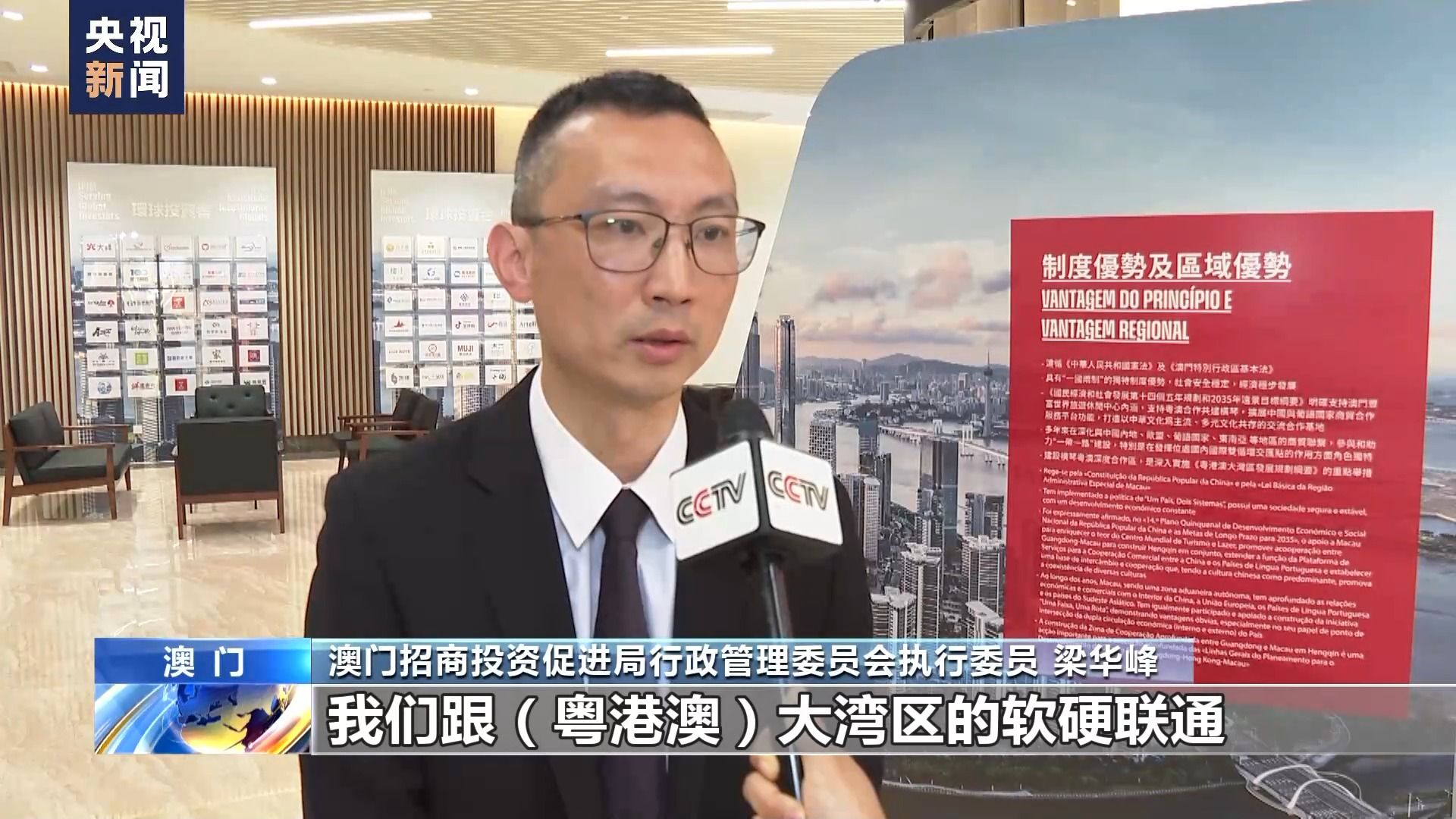 澳门招商投资促进局行政管理委员会执行委员 梁华峰:在中央有关惠澳措施的助力之下,我们跟粤港澳大湾区的软硬联通,越来越便利。大湾区的企业也看到了这种人流、物流、资金流和信息流的便利流通,所以对我们澳门投资市场的发展,非常有信心。