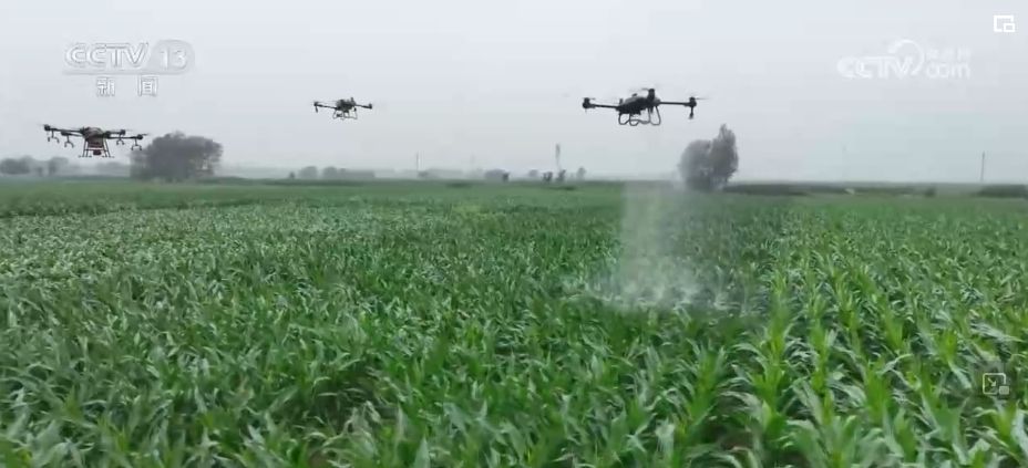目前,河北3700多万亩夏播玉米普遍进入拔节期。在邯郸市广平县北韩村的万亩玉米密植示范田里,多台植保无人机正在给玉米喷施作业,重点控制玉米旺长,增强抗倒伏能力。