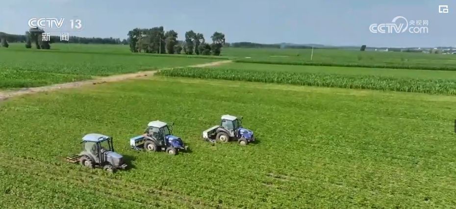 在黑龙江双鸭山市,受前期低温多雨天气影响,大豆生长期推迟。在集贤县一处万亩大豆种植地块,植保无人机正在按照设定的作业路线施撒有机肥,为大豆收获提质增产。同时,当地还组织中耕机械适时对大豆作物进行松土作业,增加土壤的透气性,提高土壤养分的利用率。