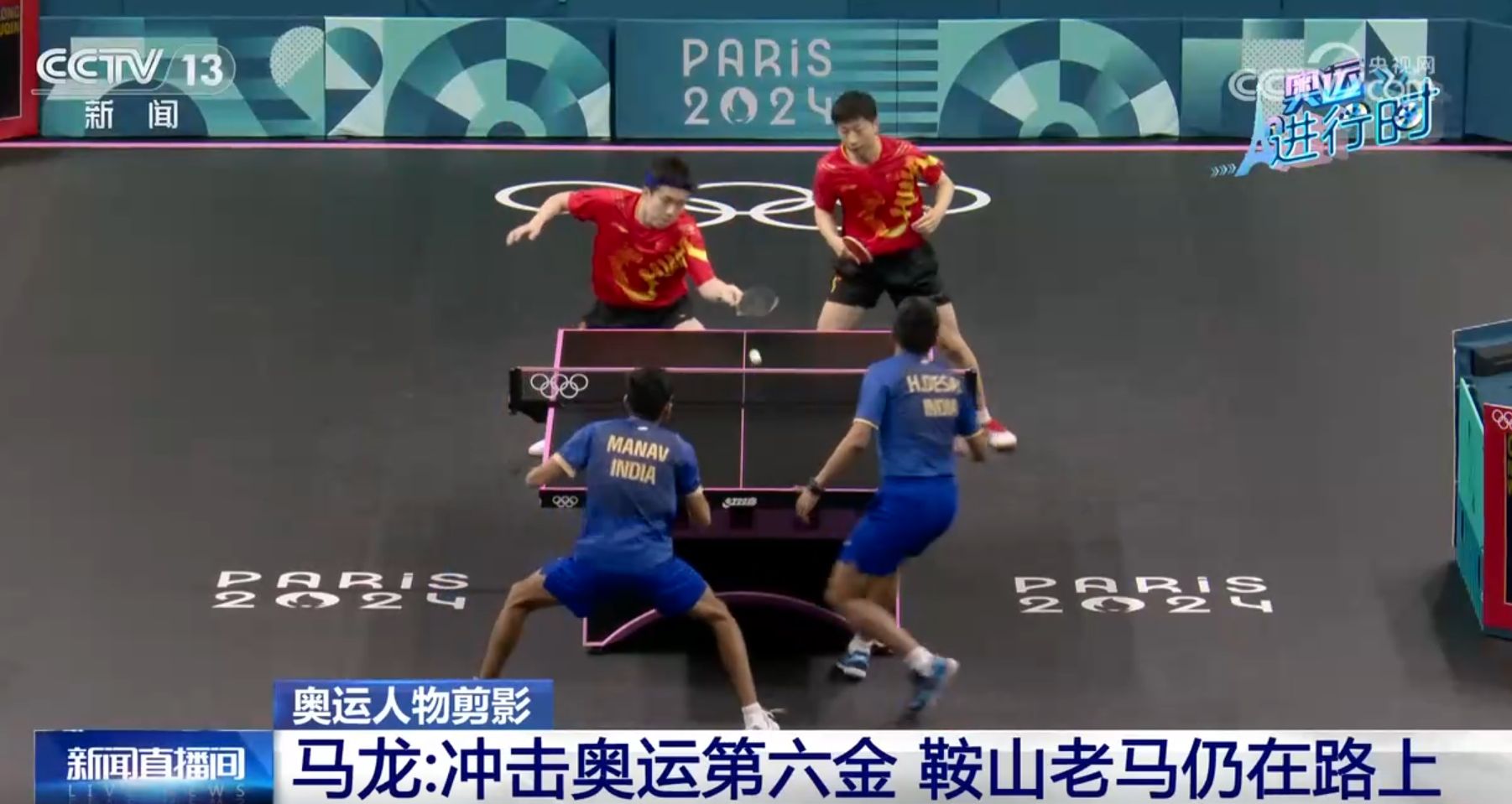 6日,南巴黎竞技场4号馆,巴黎奥运会乒乓球男团第一轮,中国男乒迎来本届首轮比赛。这是马龙的第四届奥运会,他一出场,不少观众自发起立鼓掌。马龙也正式开启自己第六枚奥运金牌的征程。刚刚单打夺冠、手风正顺的“小胖”樊振东,遭遇意外、憋着一股劲的“大头”王楚钦,站在二人中间,曾经的“鞍山小马”已经成了老大哥,是一众年轻选手的定心丸。中国队迎战印度队,马龙与王楚钦搭档双打,率先亮相。马龙更展现出沉稳老辣,经历了许昕、王楚钦两代左手搭档,配合也愈发炉火纯青,这一球虽然未能得分,但对左手强攻的躲避熟练到让人心疼。3比0轻松取胜后,马龙回到场边继续为队友加油。最终,中国队首战告捷,晋级八强。比赛似乎悬念不大,赛后却让人有些新的期待,中国队退场时,看台上的球迷高声喊出:“马龙不止巴黎见”,龙队微笑回应。赛后采访,马龙对这项陪伴了30多年的运动发出告白,中国男乒下一轮将与老对手韩国队争夺四强名额。“鞍山老马”的巴黎征程还在继续。
