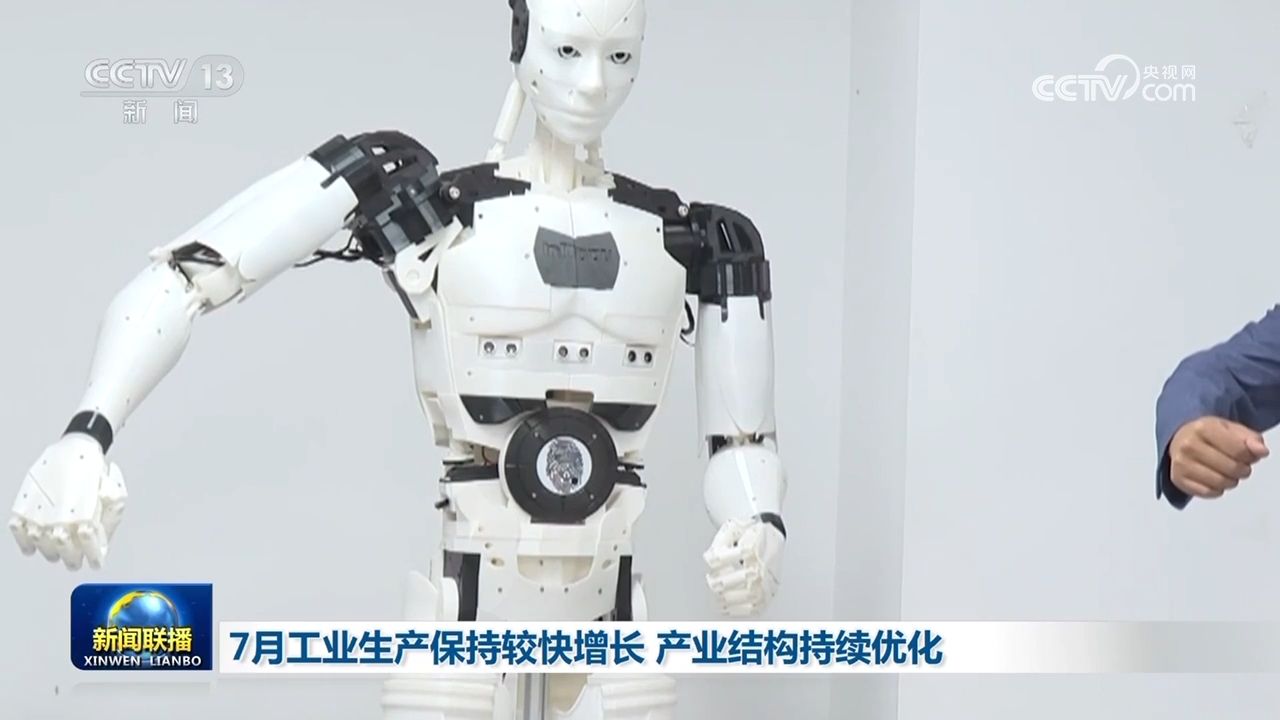 央视网消息(新闻联播):最新数据显示,7月份,全国规模以上工业增加值同比增长5.1%。工业生产保持较快增长,产业结构持续优化。