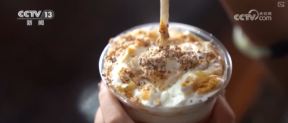 来自坦桑尼亚的腰果跨越万里,在湖南长沙的这家咖啡店偶遇老乡——炒制后的焦糖色咖啡豆。咖啡师把腰果的香脆融入烘焙咖啡的醇厚口感中,新品就在反复打磨下产生了。
