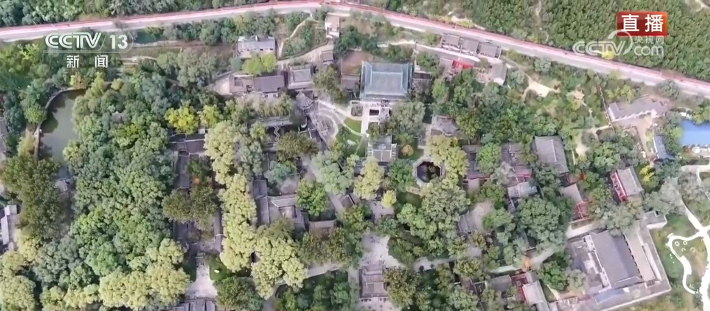 记者身后就是晋祠最为知名的圣母殿,它是晋祠的主殿。圣母殿创建于北宋,距今已有千年历史。大殿采用了宋《营造法式》的“柱升起”建造,大殿的檐柱从中间向两边依次升高,使得屋檐曲线更加柔美,而且也增加了大殿的稳固性。圣母殿是我国宋代建筑的代表作,厚重的历史和杰出的艺术价值成为游客在晋祠打卡的首选地。