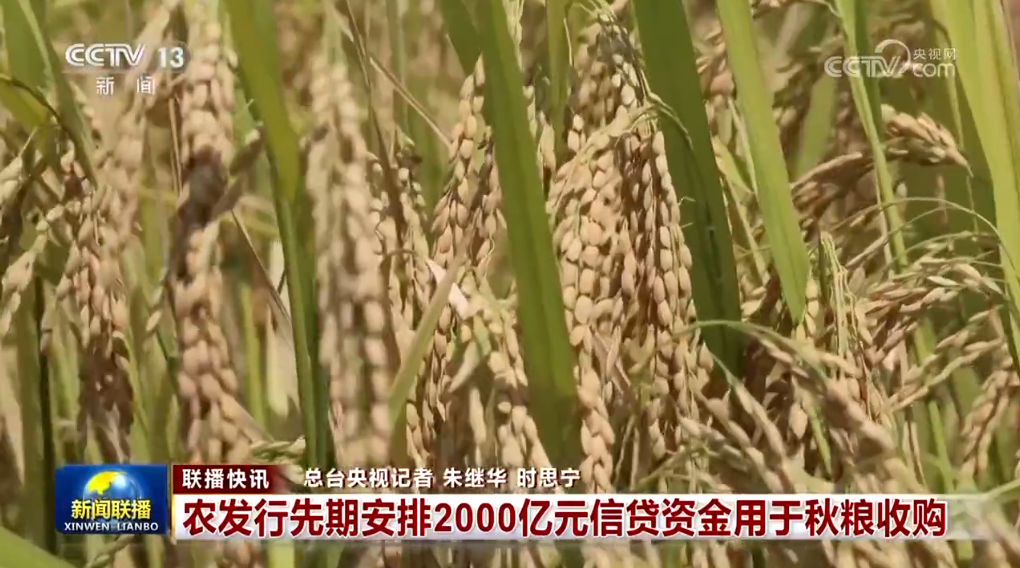 为保障秋粮收购顺利开展,中国农业发展银行先期安排秋粮收购信贷资金2000亿元,后续将根据收购需求随时调配资金,确保农民“粮出手,钱到手”。