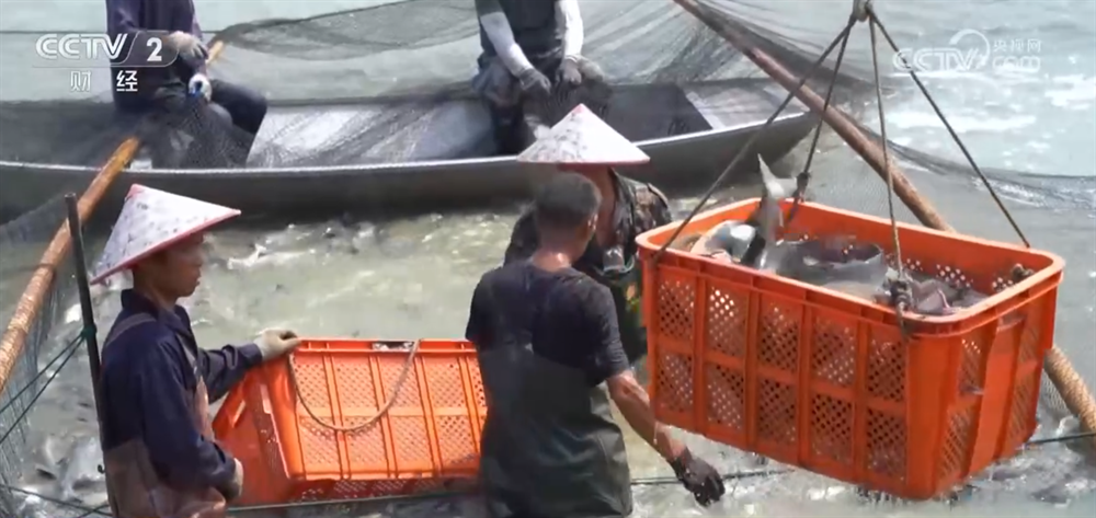 据介绍,这批鮰鱼鱼苗在今年四月份投放,经过五个月的自然哺育,各项指标均达到捕捞标准,一天的收入就超过10万元。经过现场分拣、称重后,这些鲜鱼当天就能被送上市民的餐桌。据了解,这片鱼塘面积有225亩,预计本次收获季能产出80万斤左右的鮰鱼,亩均产量比往年增加了500斤。