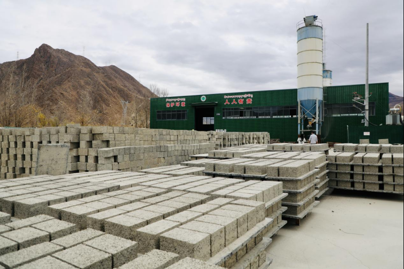 图为建筑垃圾制成的砖块材料。次仁罗布 摄