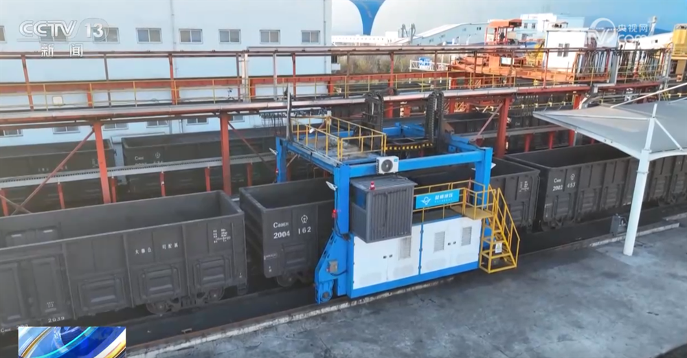 大家看到的这个是运煤车里的扫地机器人,它只需要三四分钟就能清理完一节车厢,而这个工作过去需要两三个工人忙活15分钟,大大解放了人力并且提升了工作效率;而大家现在看到的这个叫做火车摘挂钩机器人,就是车皮之间连接的挂钩,摘钩和挂钩这项工作过去一直都是人力完成,而在这里现在实现了机器人操作,这就有效降低劳动强度,并且减少了安全隐患。特别值得一提的是,我们刚才看到的这些新技术都是梁山港和国内科研机构合作自主研发的。