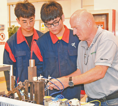 德国技术人员为苏州健雄职业技术学院学生培训操作技能。樊春吉摄