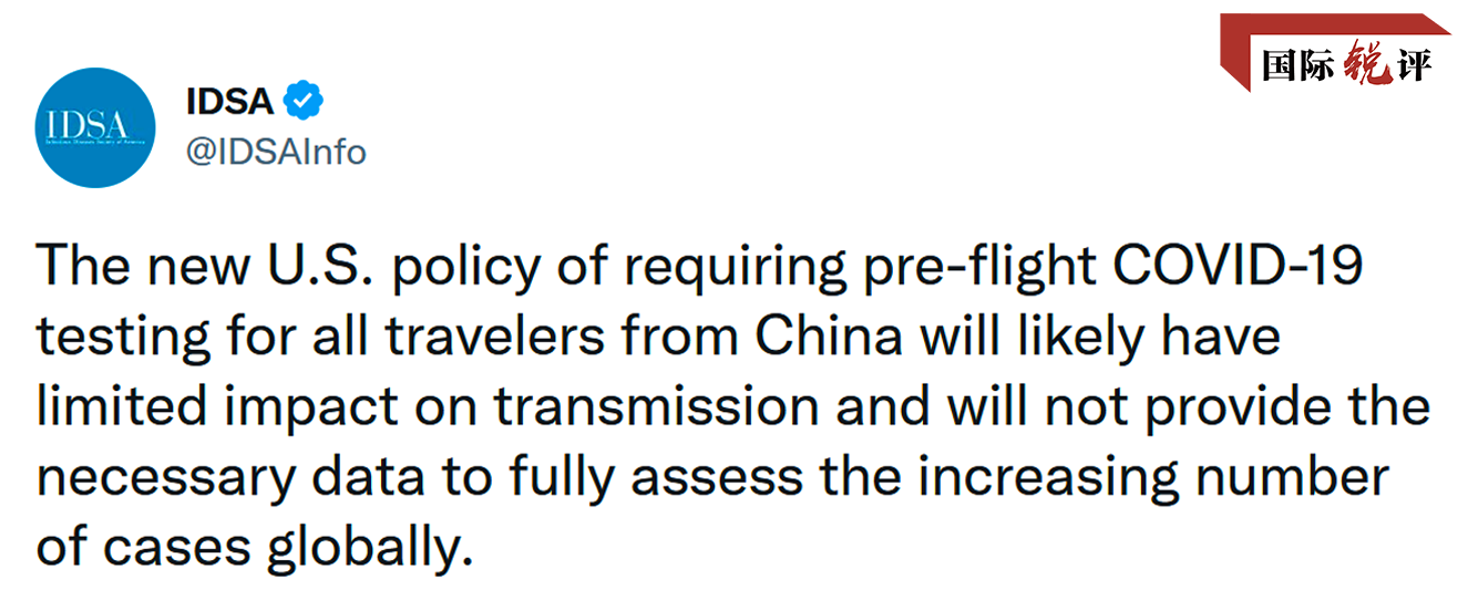 “这不仅不会对限制病毒传播产生多大影响,也无助于全面评估全球病例增加带来的影响。”6日,美国传染病学的权威机构——美国传染病学会(IDSA)在社交媒体账号上发表声明,就美国对中国游客入境设限表示了异议。