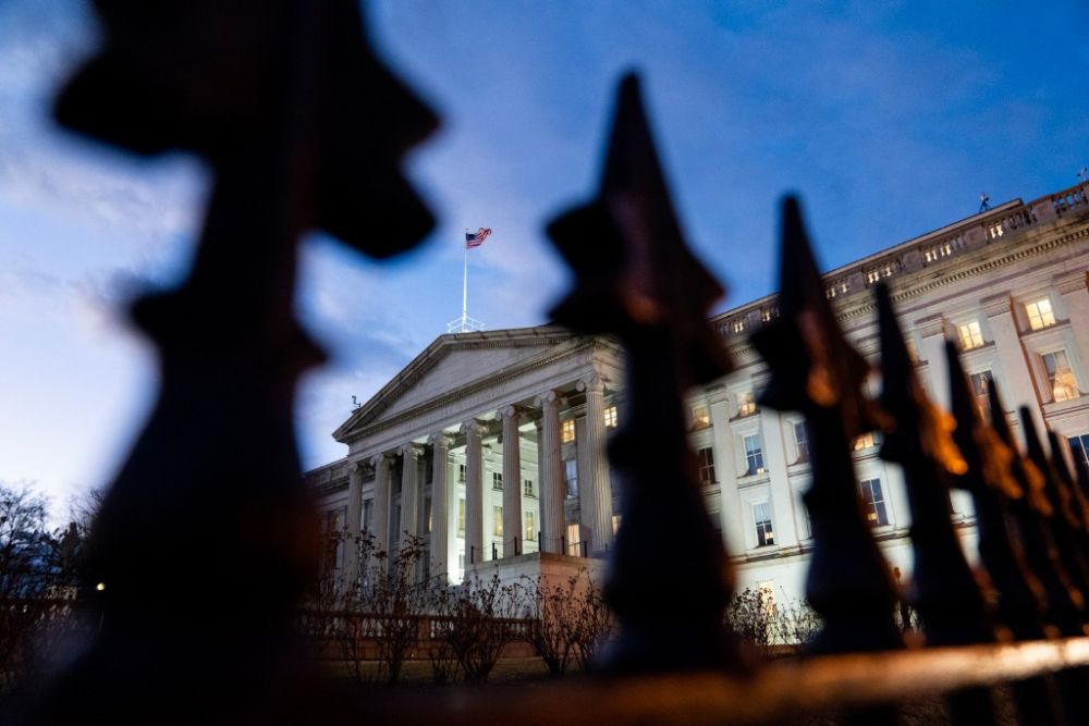 这是1月20日在美国首都华盛顿拍摄的财政部大楼。(新华社记者刘杰摄)