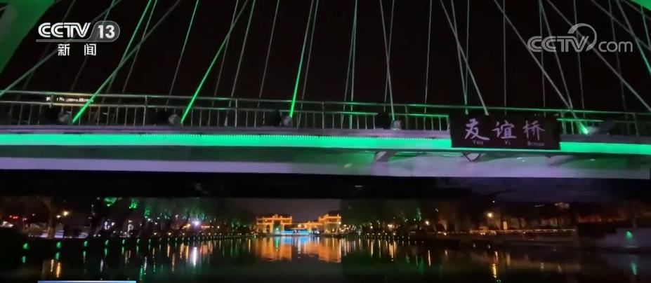 北京亮马河国际风情水岸线,连通从燕莎码头至红领巾公园共6公里的游船航线。夜游项目包括游船体验、光影桥体、文化空间、美食体验等,涵盖文商旅业态,打造多元新消费。沿河的2湖、24桥、18景,所到之处皆是如诗如画的美景,游客仿佛被包裹在星河之中,灯影璀璨如入梦幻。