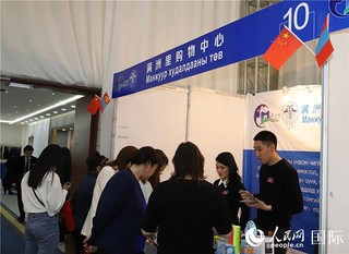 蒙古国乌兰巴托·中国满洲里企业推介会暨商品展示会现场。人民网记者 霍文摄