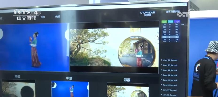 总台央视记者 徐速:我现在是在本次展会的一个著名网红打卡点——元宇宙互动片场。采用实时超高清电影拍摄和云计算技术,可以在现场对观众进行实时抠像合成处理,从而虚实融合,可以身临其境体验上千种元宇宙空间。