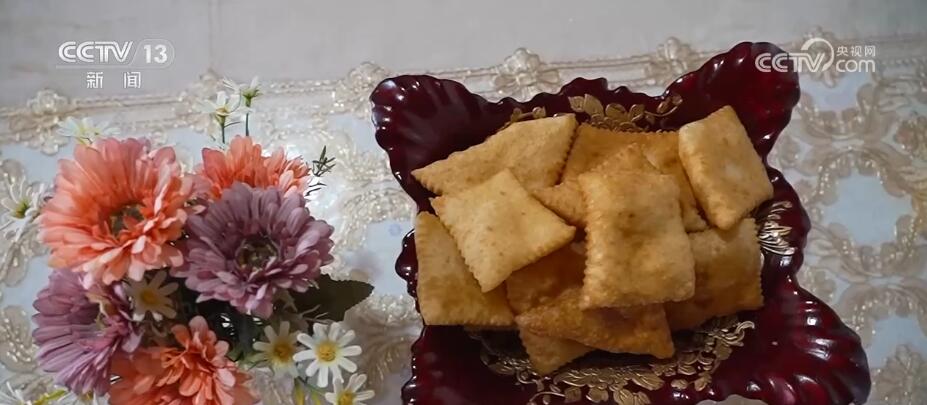 塔城市新城街道哈尔墩社区居民 阿依霞·司马克(哈萨克族):这个是我做的,我们塔城多民族的地区,各民族都是姐妹,这个各民族的花。我昨天晚上和面,早上早早烤出来。大家都是花,我们都是一家人,和谐民族团结一家人。