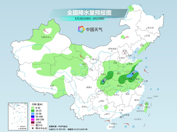 28日,雨带再度南压,降雨主要分布在江淮、江汉等地,强度减弱。预计新疆北部和南疆盆地南部、西藏北部和东部、西北地区中部、陕西大部、华北南部、黄淮、江淮、江汉、四川盆地东北部、江南北部、辽宁东部等地部分地区有小到中雨,其中,陕西南部、安徽北部、江苏北部、四川盆地东北部等地部分地区有大雨。