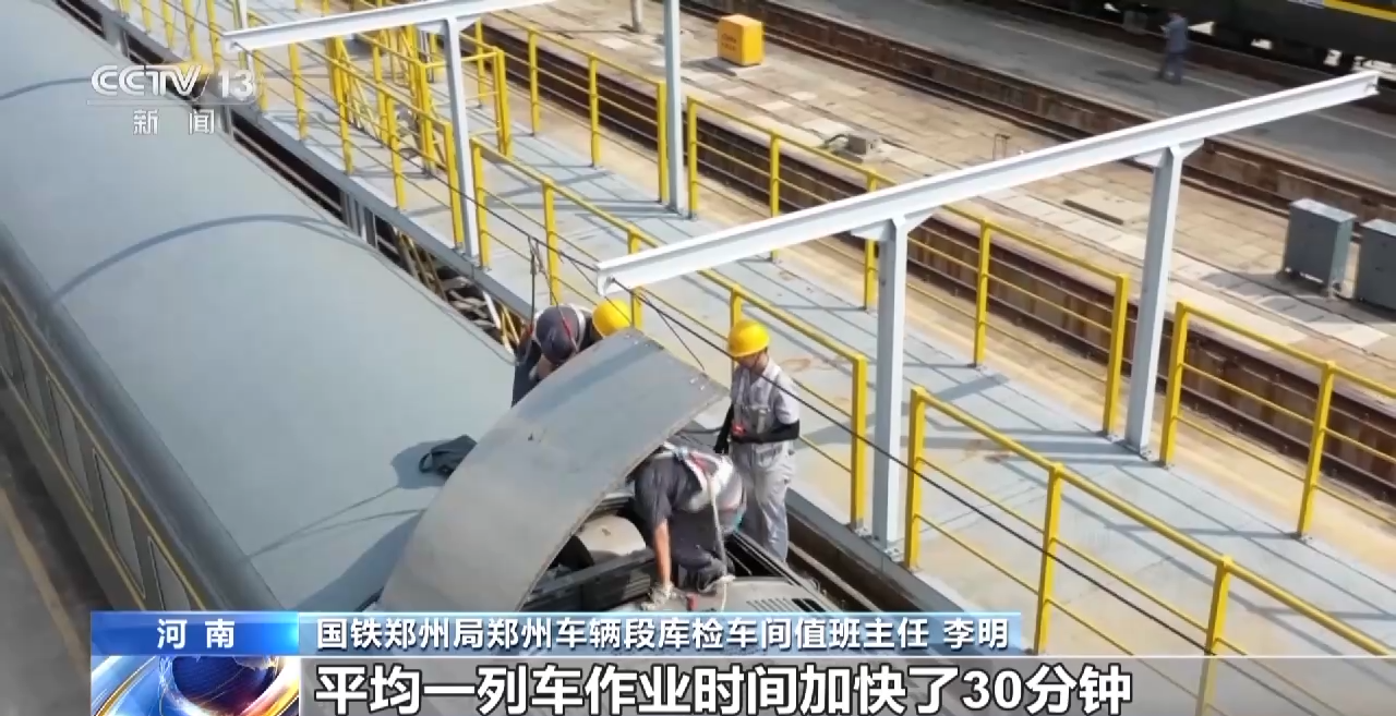 国铁郑州局郑州车辆段库检车间值班主任 李明:目前一天作业量达到12列200多辆,我们现在调整了班制,加强每个班作业力量的分配备,平均一列车作业时间加快了30分钟。