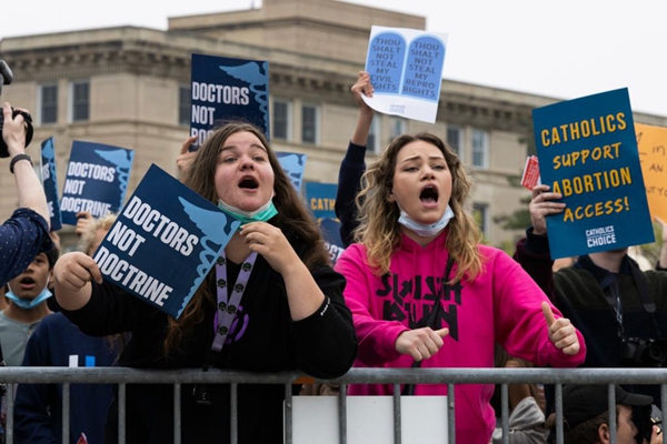 2022年5月3日,在美国华盛顿,支持和反对堕胎权的人们在美国联邦最高法院外集会。新华社发(亚伦摄)