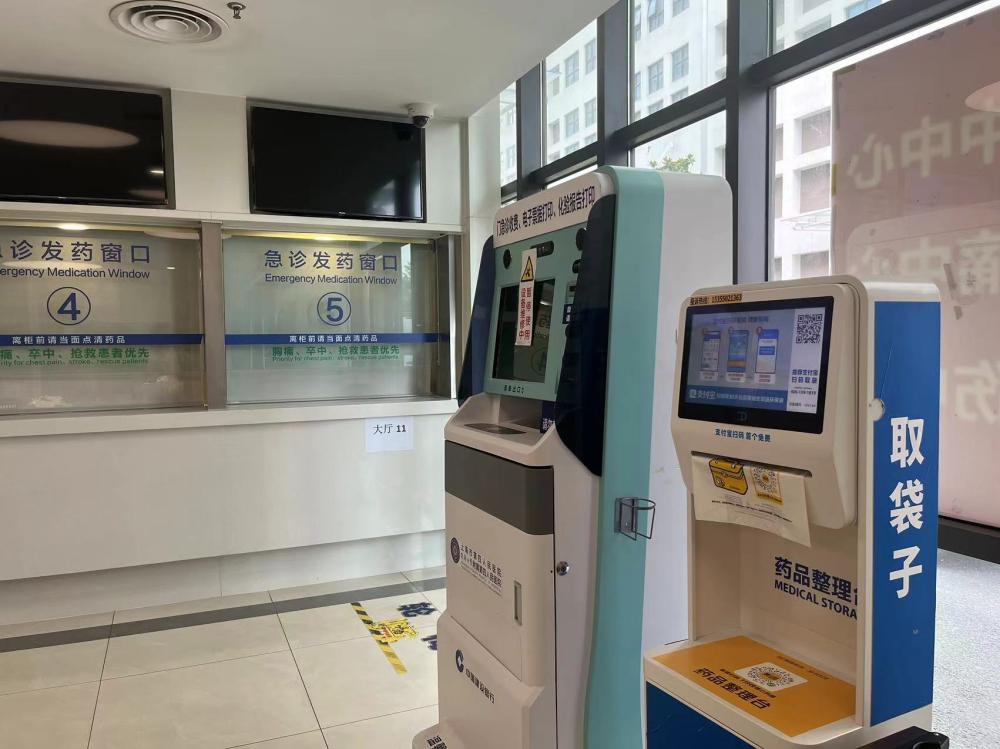 第四人民医院急诊药房的取袋机。