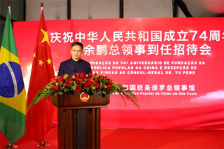中国驻圣保罗总领事馆举行庆祝中华人民共和国成立74周年暨余鹏总领事到任招待会