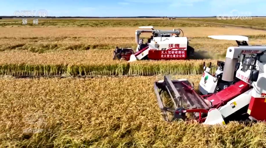 黑龙江省农业农村厅副厅长庞海涛:“目前我们正科学有序地组织各地抢抓晴好天气,特别是发挥各类大农机作用,全力抢收快收,确保丰收到手,颗粒归仓。”