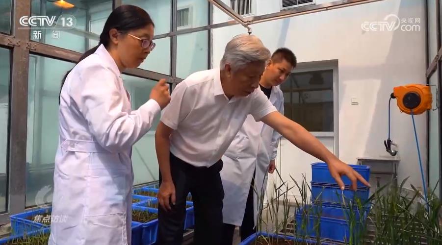 在河南省农业科学院的玻璃温室,50株刚刚破土一个月的小麦新品种幼苗长势不错。小麦品种的培育者——小麦育种专家许为钢院士带着团队细心地查看这些幼苗。