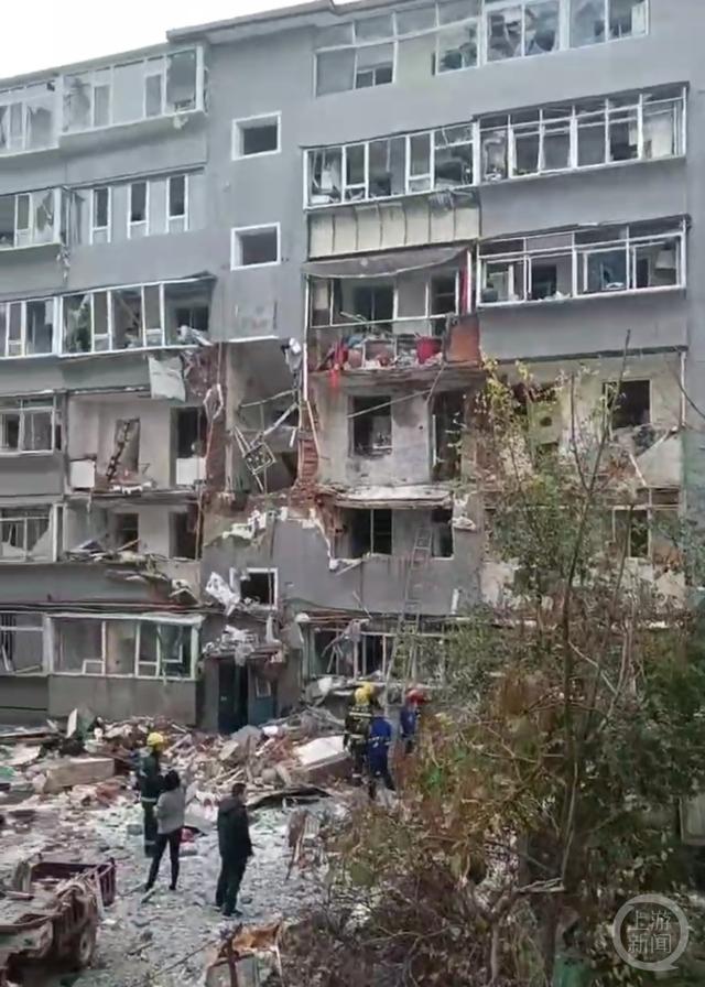 事故现场视频显示,爆炸房屋周围上下楼层均受波及,楼房外墙被炸开,部分楼体坍塌。