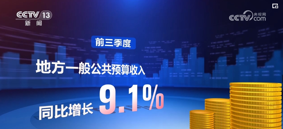 从地方来看,前三季度,地方一般公共预算收入同比增长9.1%。