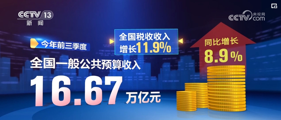 数据显示,2023年前三季度,全国一般公共预算收入16.67万亿元,同比增长8.9%。其中,全国税收收入增长11.9%。