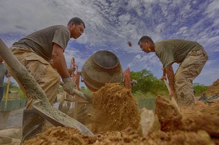 维和官兵不怕脏累、挥汗如雨,顶着炎炎烈日紧张抢修索普桥。维和工兵分队供图