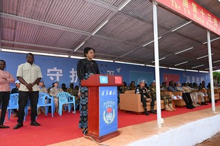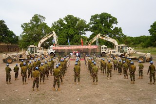 维和工兵分队举行西加扎勒河州“迪祖贝尔——索普”补给线竣工仪式,联合国官员、当地政府官员、孟加拉护卫和我维和官兵共同出席。维和工兵分队供图