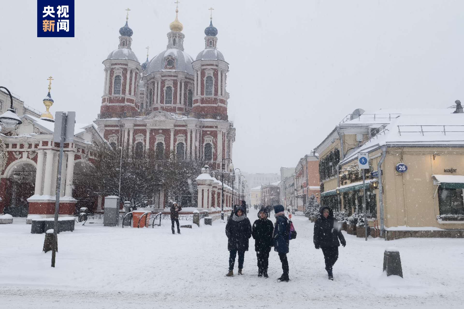 俄罗斯首都莫斯科出现强降雪天气 日降水预计将达到月均三分之一