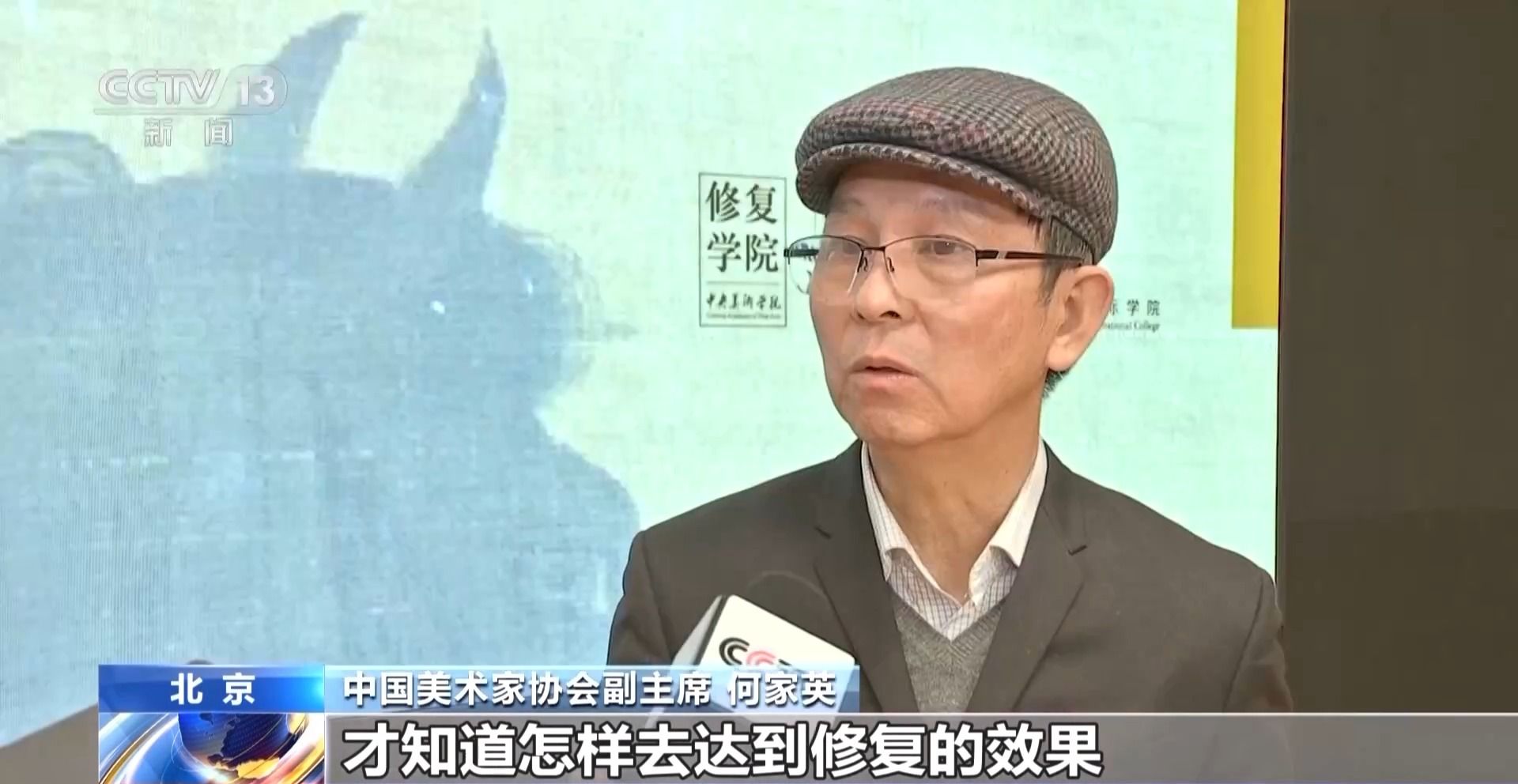 中国美术家协会副主席何家英:对修复具有很好的辨识、鉴赏的能力,才知道怎样去达到修复的效果。不然的话,修复对于文物的破坏性太大了。