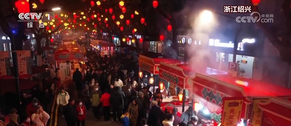 买年货,游庙会。在浙江绍兴首届山阴传统庙会现场,总长300多米的府横街人流涌动,各种摊位让人目不暇接。这里汇集了五十余种绍兴特色美食、非遗文创产品等,还有丰富多彩的绍兴本土民俗文化活动上演。
