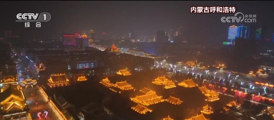 内蒙古呼和浩特市的大街小巷也挂起了各式各样的花灯。夜幕下的城市绚丽多彩,城市各主要街道、广场及交通节点都设置了不同的灯光景观。